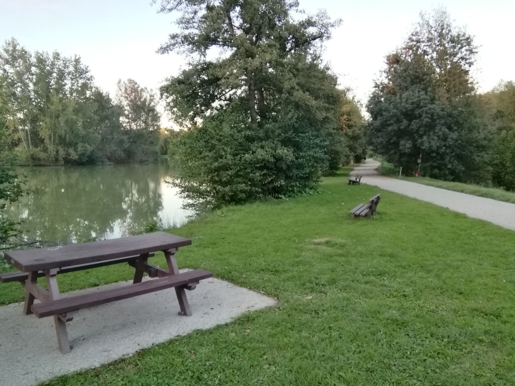 There are two lakes one left entirely for wildlife and the other has a wakeboarding cable for entertainment and fun. There are kids playgrounds, opens green spaces, a dedicated cycling track, hardened walkways and a covered municipal pool, so although chilly I saw a group of kids frolicking in the pool. Plenty of peaceful tranquil corners, benches and picnic tables. And of course a lovely stopover gîte for pilgrims right alongside the Chemin de Compostelle. I suspect the mayors of this village over time have made it into a beautiful and welcoming place. Today en route I stopped to pick some lavender and rosemary so tomorrow morning I can fill my thermos with delicious herbal tea. A group has booked the gîtes ahead me so the next free bed I could book is 32kms further on at Gîte Pied à Terre en Gascogne.